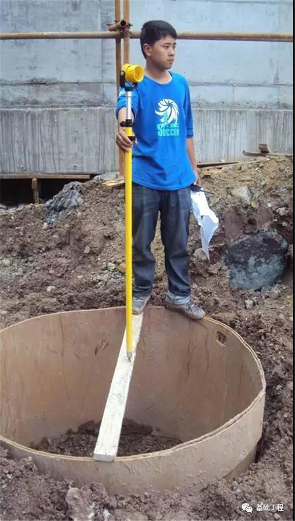 6、護筒護筒埋設好后,需對護筒的偏移及垂直度進行校核,護筒中心允許偏差為50mm,垂直度不得大于1%。