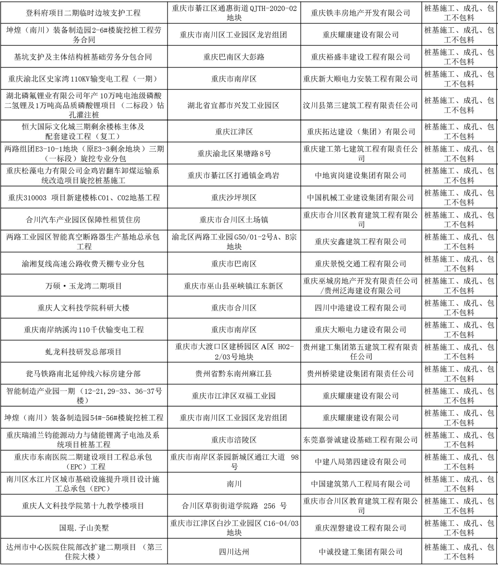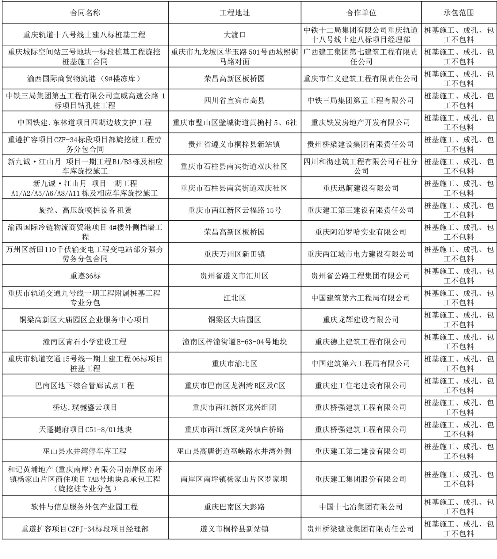 重慶坤地地基基礎(chǔ)工程有限公司近年部分施工項(xiàng)目